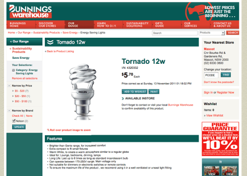 … even though you can buy a higher wattage, dimmable CFL from Bunnings for just $10.50: