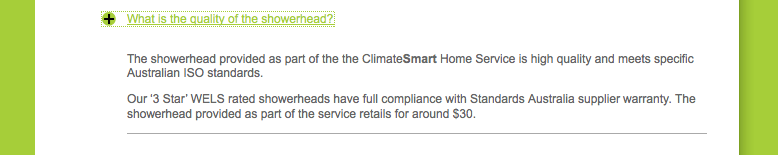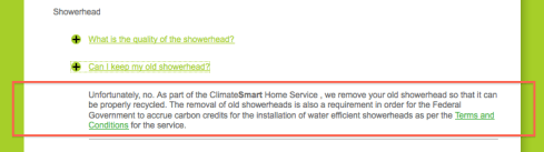 Indeed, you will fail to notice that while telling you the retail value is “around $30”, the government is only offering to supply a basic 3 star “showerhead”, which you can buy yourself at Bunnings for $15.23…
