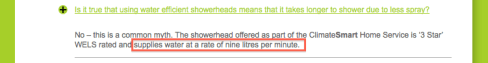 You will fail to notice that the government has told you that they will only give you the new showerhead if your existing one uses “more than 9 litres per minute” …