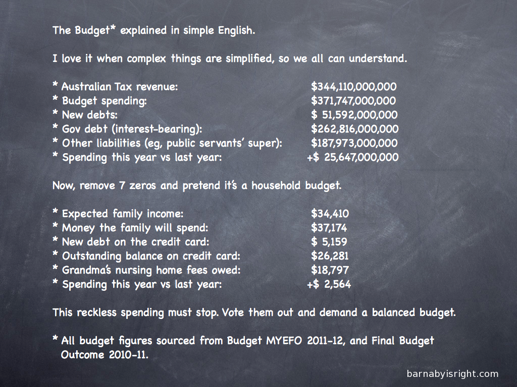 Let us take a look at how The World’s Greatest Treasurer Wayne Swan the Treasury department’s economists have used the “as a percentage of GDP” lie as the foundation of steaming bovine faeces for an entire speech delivered to the Australian Business Economists’ Breakfast on 29 March 2012 by the Treasury’s muppet.