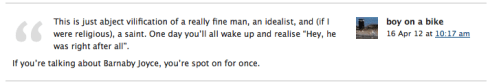 Barnaby Joyce writes for the Canberra Times (my emphasis added):