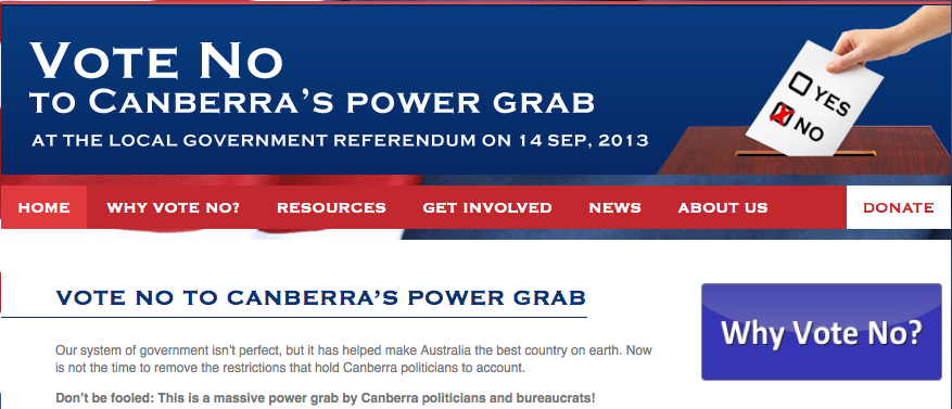 I encourage all readers to visit the nopowergrab.com.au website, and learn why you should vote NO to the referendum question that will be included with your ballot papers at the September election.