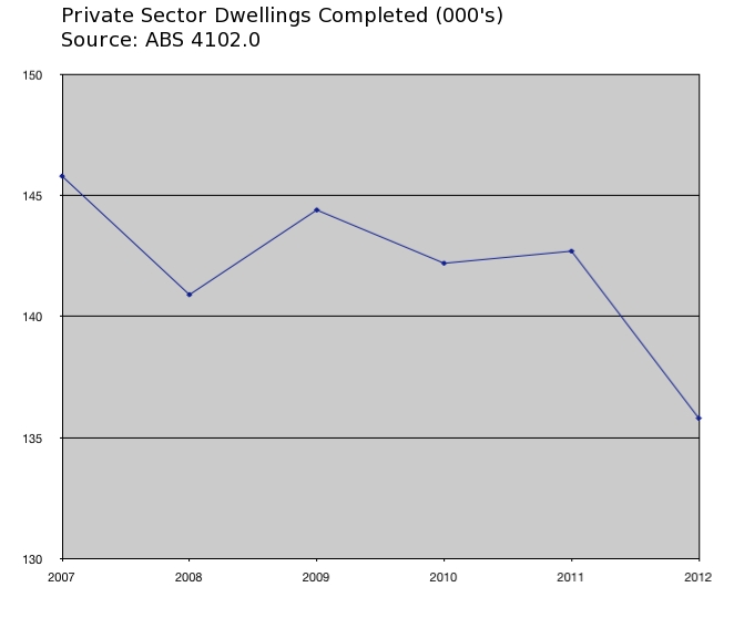 … and that is where a closer examination of that one chart above demonstrates that the RBA’s house price policy — trying to pump up the housing bubble again, now that their recently preferred “make room for the mining boom” policy has proven to be seriously short-sighted — is doomed to failure.