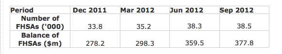 “Owner-occupied” housing credit growth, by contrast, had peaked back in October 2009 — the very same month in which the RBA first began to raise interest rates again, from their GFC “emergency low”. The First Home Owners Grant helped keep “Owner-occupied” housing credit growth relatively steady through to March 2010, when it resumed its long, steady post-2004 and pre-GFC decline. It has only now begun to flatline, in the first quarter of 2013.