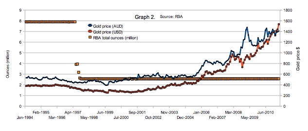 1. This explanation conveniently ignores the fact that the RBA had been loaning its gold reserves, according to the Australian Bureau of Statistics, since 1986. These gold loans of course accrue interest.