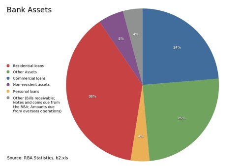 Here’s a chart sourced from the RBA’s own data, showing the % breakdown of our banks so-called “Assets”:
