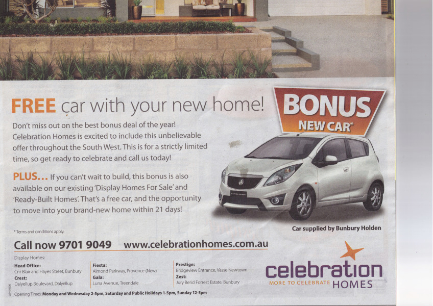 And major builders in that same “boom” state are offering a $14,500 RRP “free” car, as an incentive to encourage people to sign up for a new house.