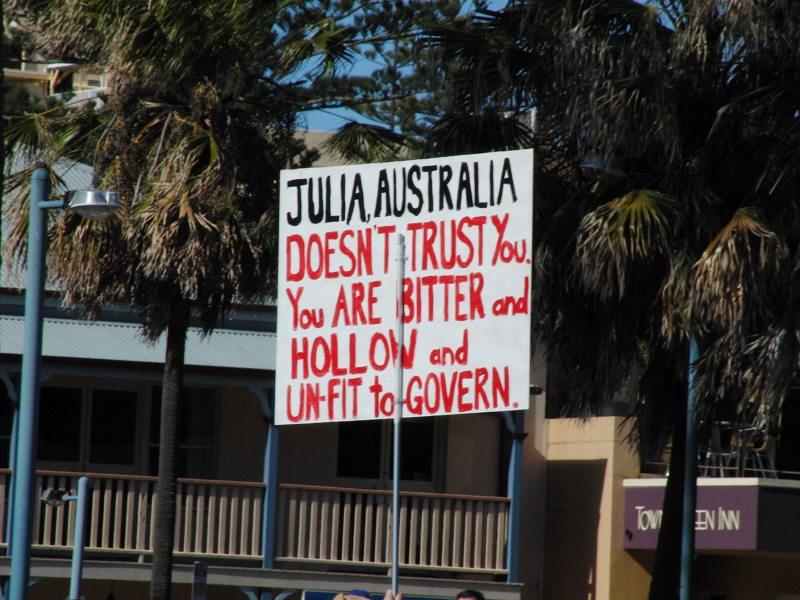 The Gillard government’s principle policy initiatives, the carbon tax, the Malaysian solution and the live cattle solution, are not ones that it took to the last election but ones that have been forced on it due to the pressure of minority government. The authority of the majority determined by the minority leads to the complete and utter confusion we see on our television every night.