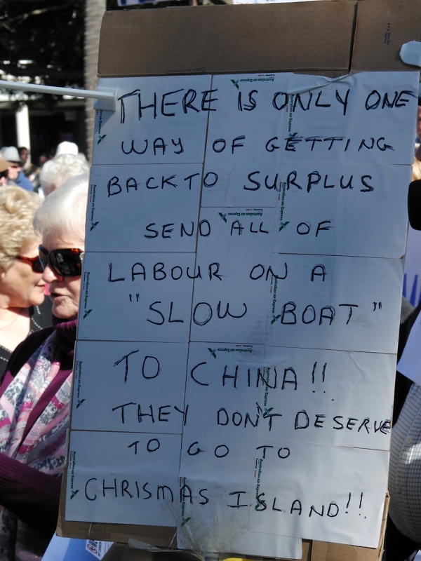 As the shopper said to Julia Gillard, “people are not stupid”. In Labor’s four budgets government spending has equalled $1.36 trillion. Compare that to the $988 billion spent in the last four budgets during the supposedly profligate period of the last government. This money has to be repaid and you are going to repay it.