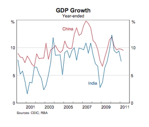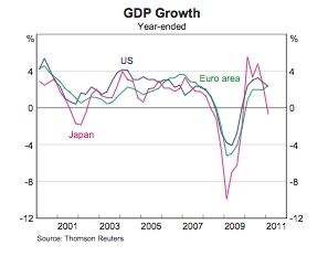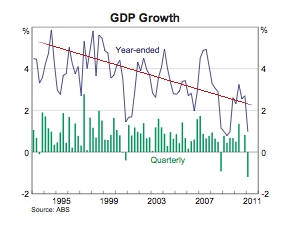 “Growth over 2011 has been revised downwards due to a slower than expected recovery in coal production and to a lesser extent a downward revision to consumer spending as domestic and international concerns have weighed on sentiment,” the RBA said.